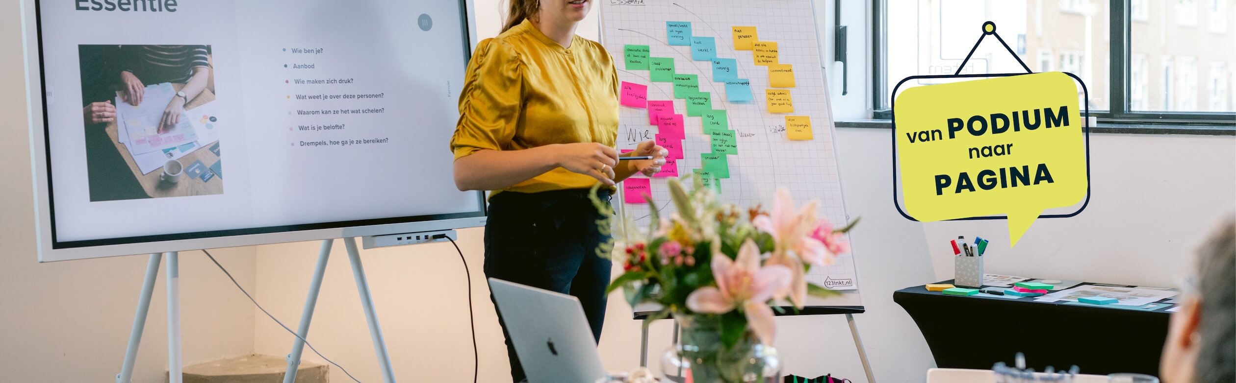 In een echte zaal is dat eigenlijk heel herkenbaar. Je voelt snel waar je bent, waar de aandacht naartoe gaat en wat er van je verwacht wordt. Online moet je dat bewust ontwerpen.